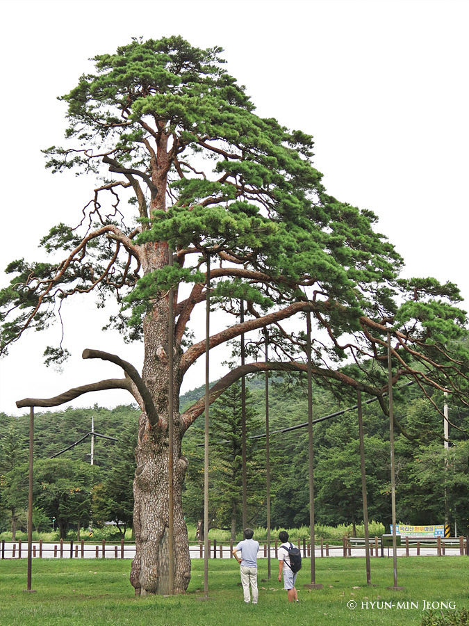 The pine tree called "Jeongipumsong" is the most famous tree in South Korea. It is Natural Monument 103 by Cultural Heritage Administration of Korea. Its height is 14.5 m and its girth is 4.77 m. This pine tree used to be beautiful with the shape of a conical hat or an umbrella.