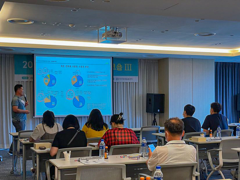 중앙문화재돌봄센터 개최하는 문화재돌봄활동별 상호 간 이해 제고 및 공감대 형성 증진을 위하여 3회에 걸쳐서 전국에서 시행된 「2022년 문화재돌봄사업 분임워크숍」에 "문화재와 나무"라는 주제를 의뢰받아서 강연하게 되었다. 그 동안 머릿속에 기억되었던 것들과 몸소 현장에서 조사한 사례를 중심으로 급하게 자료를 만들었다. 준비시간이 부족했지만 그 동안 접하기 쉬지 않는 외국 고 목재들의 이야기와 국내 목재 문화재들에 대해 천천히 살펴보고자 노력했다. 마지막으로 문화재에 쓰인 수종(나무의 종류)에 간단히 짚고 넘어갔다.