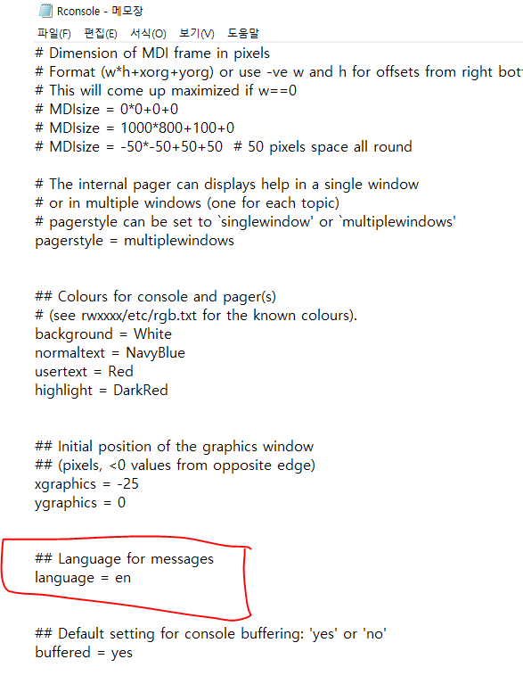 3. R 언어를 '한국어' 에서 '영어'로 변경하기